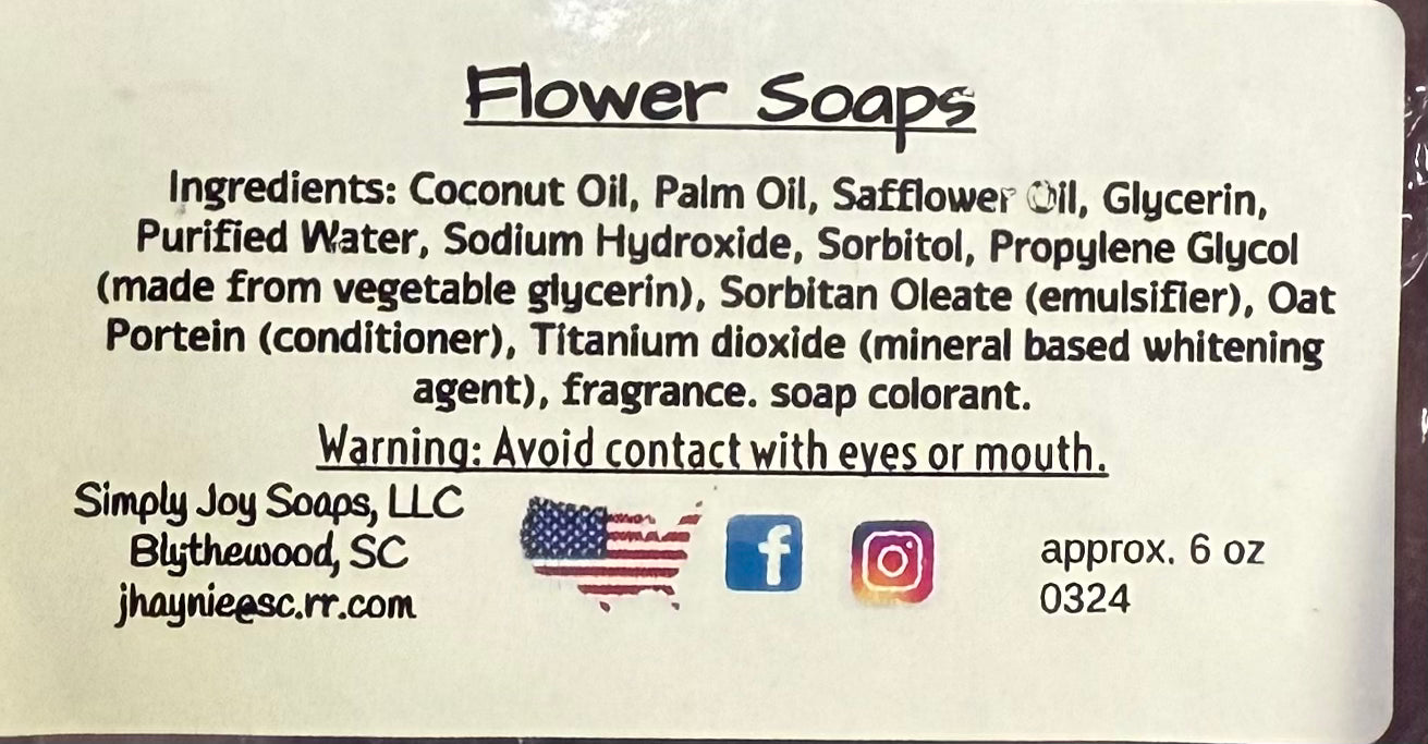 Floating Flower soap. Made by Simply Joy. Approx 6 oz