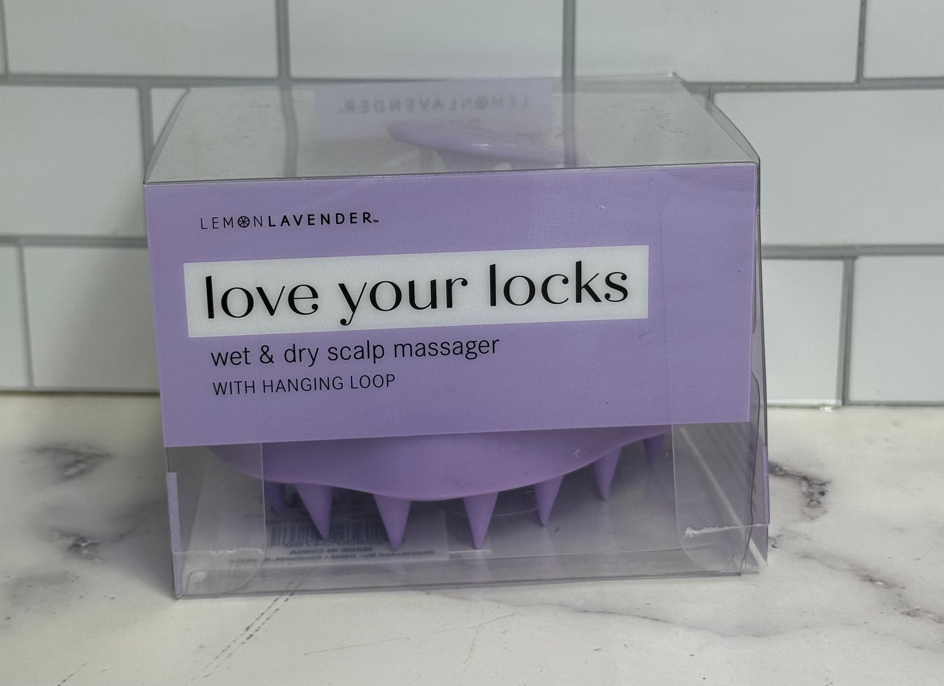 Lavender silicone wet and dry scalp massager. Use to massage products into scalp or just to massage for headaches, etc.